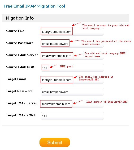 3. Use SharkASP.NET free Email IMAP Migration Tool, click