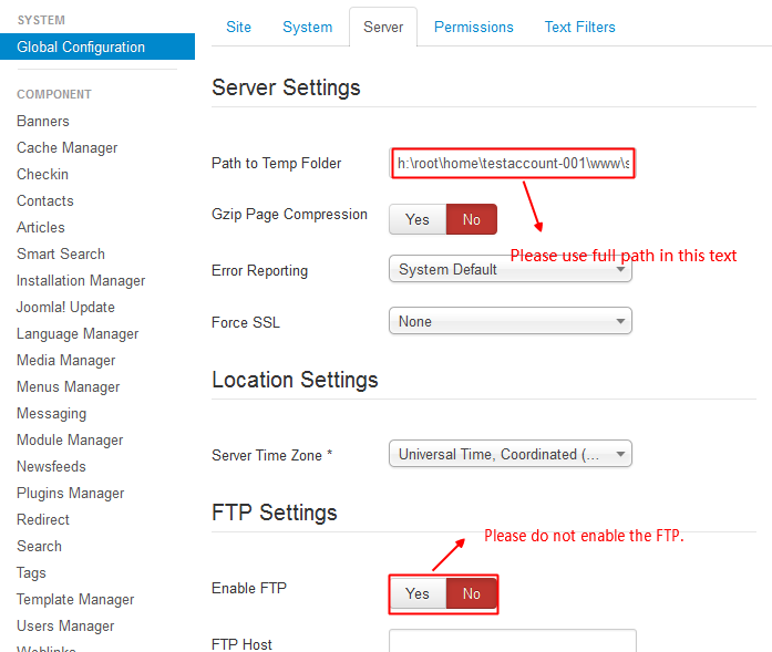 3. Don't enable FTP: Choose "NO" at  admin panel >> System >> Global Configuration >> Server >> FTP Settings >> Enable FTP.