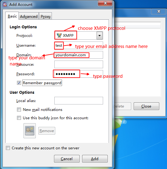 5> Click on "Add" button, and then go to the Pidgin main panel, try to connect by choosing "available" status, it should be working now.