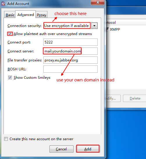 2> Once you enabled it, open your local Pidgin client, click on the "Add" button to add an account.