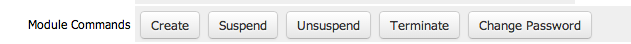 7) Now the configuration has been completed. You can pick a client and setup a hosting plan. Once you finish setting up a hosting plan for a client, go to the client's profile-> Product/Services and you'll see the following command. You can create, suspend, un-suspend, terminate and change password for the client's hosting account.