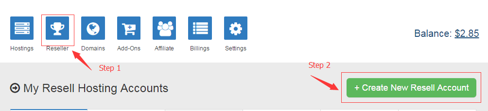 It's easy to create new resell account for your customer in your member account, please follow the steps below to create it.