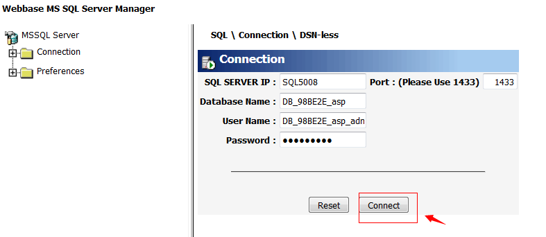 1. Login to your database from Webbase MS SQL Server Manager