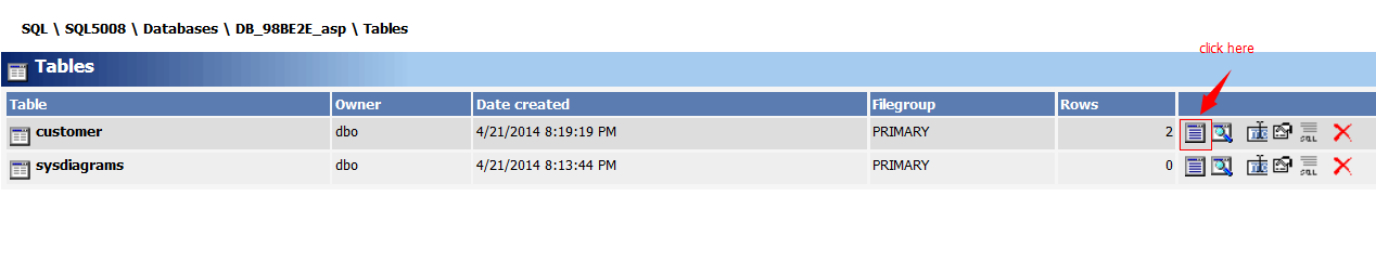 2. Explore to your database tables, click tables