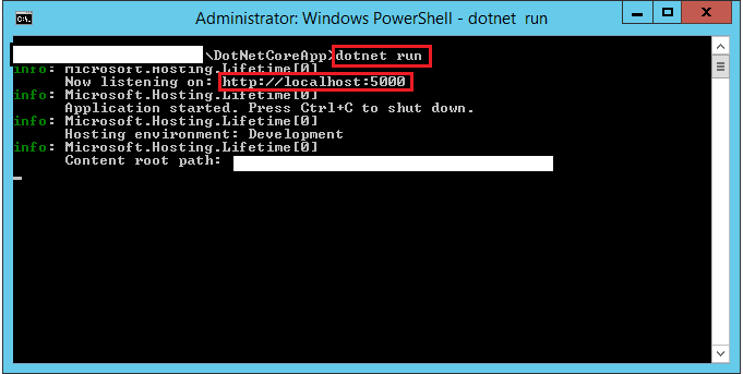 Now open the command prompt and run the same application using dotnet CLI bu using command dotnet run. Now it will host app on http://localhost:5000