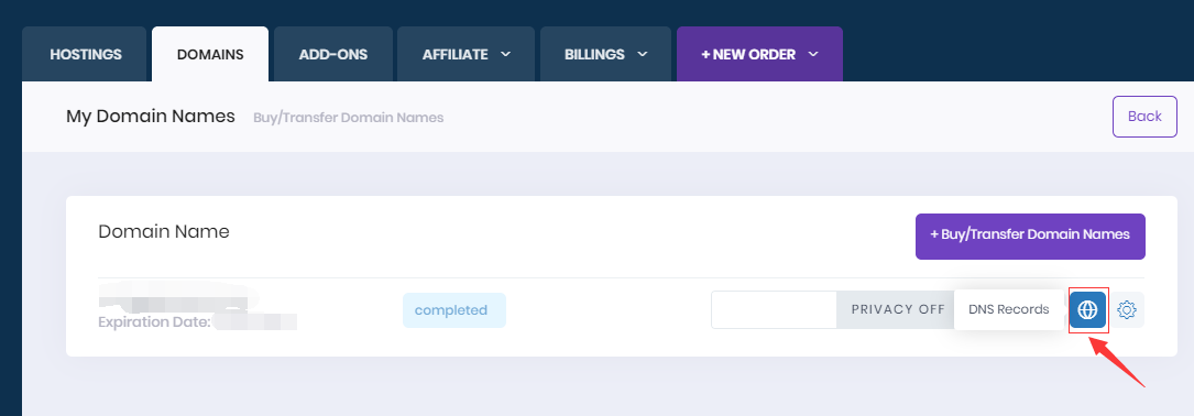 If your domain is using our nameservers below, then you can manage your domain DNS records from Control Panel.