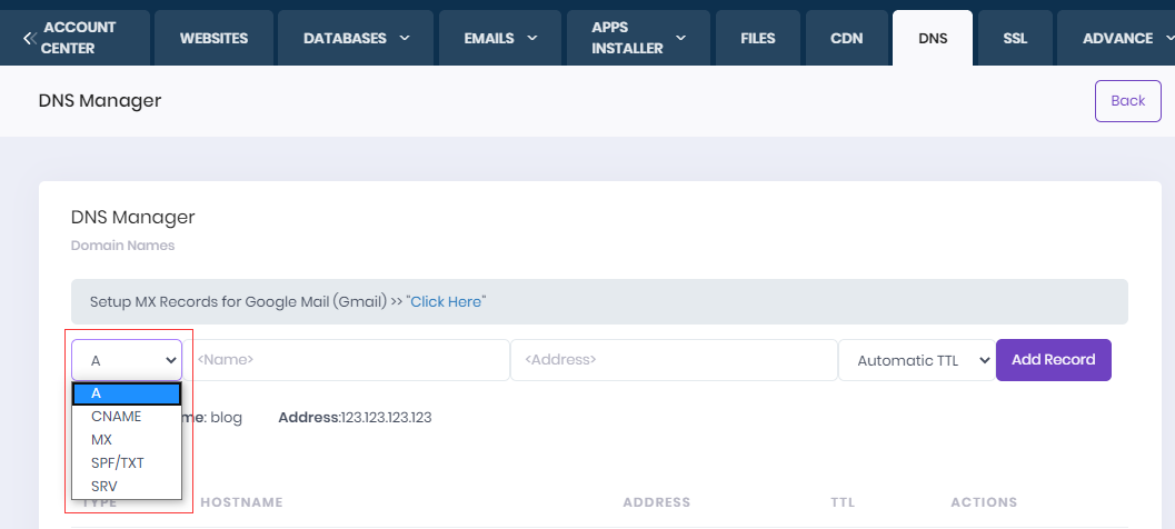 To update your domain DNS records, you can login to your Account center--> Domains --> Click "DNS Records" button, then it will redirect you to DNS Manager, so you can edit/add the accordingly DNS records as you need.