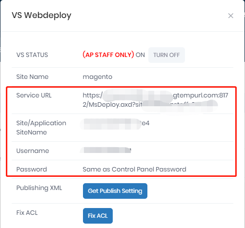 3. You will be able to find the corresponding web deploy login info from there when it's turned on.