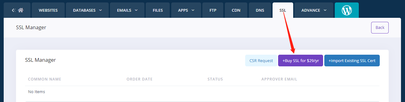 1. log in to your SharkASP.NET account and go to hosting control panel -> SSL, click the "+ Buy SSL for $29/yr" button