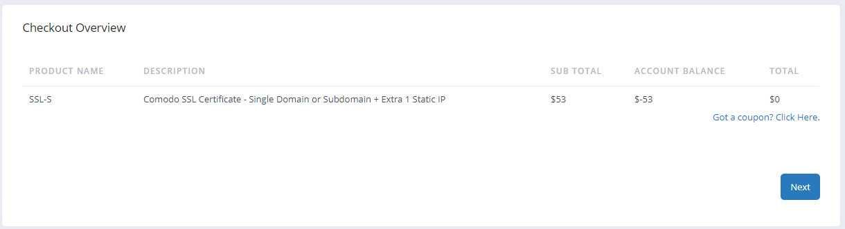 3. select the hosting account which you want to purchase this SSL for