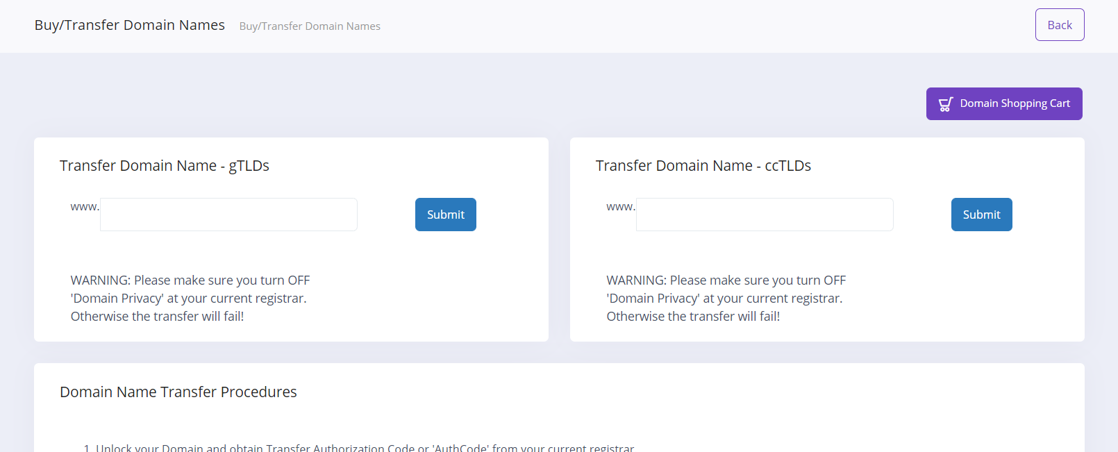 - Disabling whois privacy if it is enabled