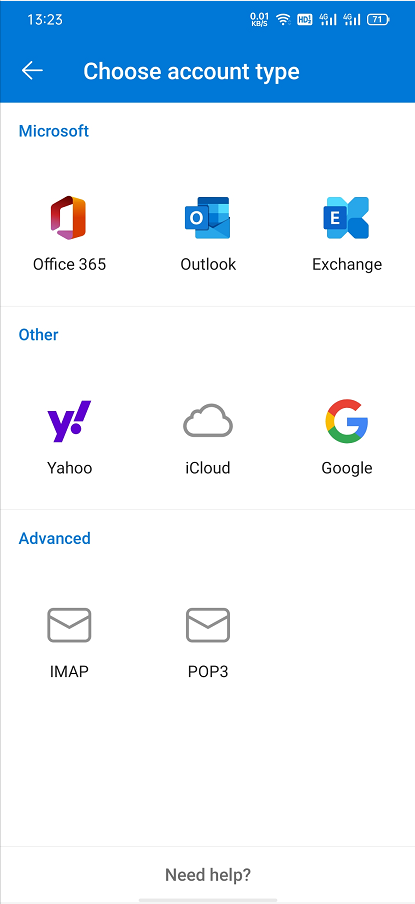 NOTE: Outlook for Android doesn't support POP3 accounts.