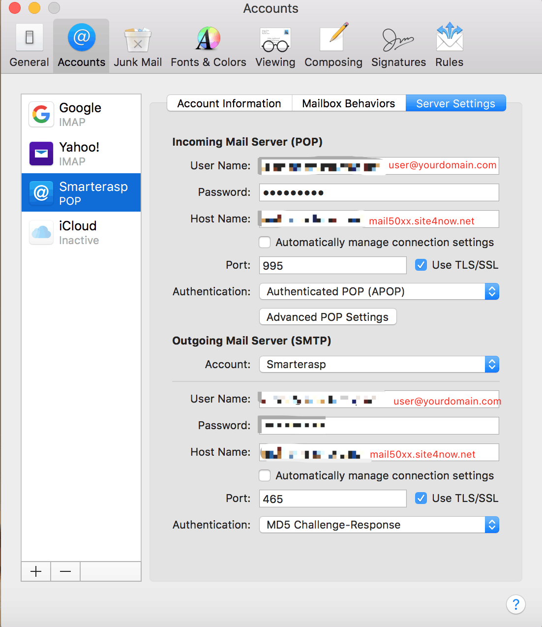 Use Server Settings preferences in Mail to change options for an account’s incoming and outgoing (SMTP) mail servers.