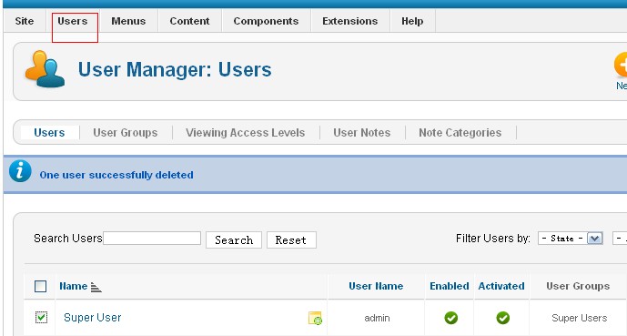 3. Click Users to modify the Super User email account to the same email address as smtp user above