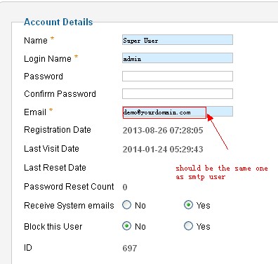 Note: the 'From email' must be same as the 'SMTP Username'.