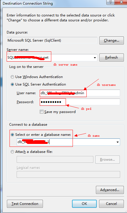 Please confirm your database login info from your hosting control panel-->Database Manager-->MSSQL Manager